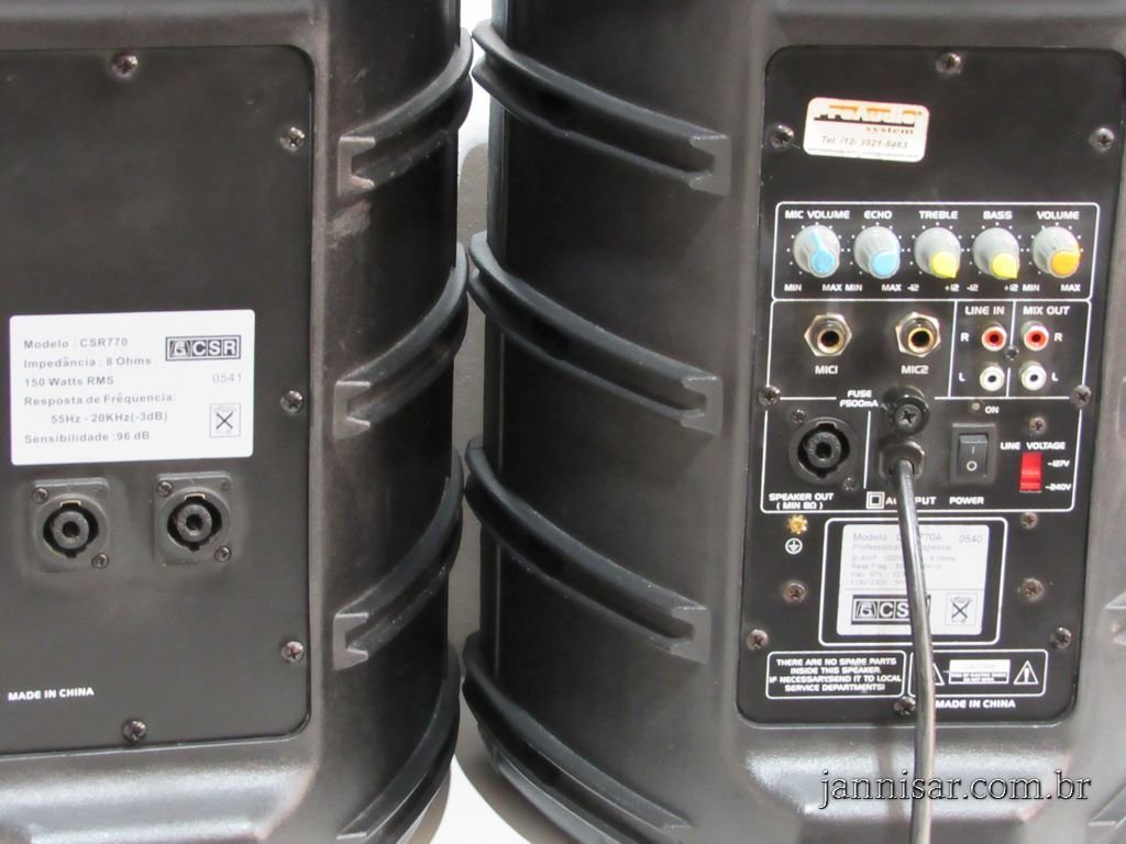 Entradas servo balanceadas com conectores XLR e TRS ¼”. A:40cm, L:26cm, P:27cm, 110v R$ 1920,00 PAR